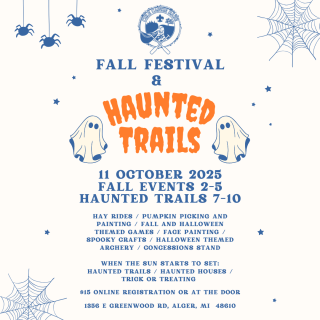 Join us for Hay Rides to Pick Pumpkins for Painting, Fall and Halloween Themed Games, Face Painting, Spooky Crafts, Halloween Themed Archery, and a Concessions Stand.